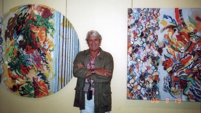 Chance plays as great a role as premeditated design. The unanticipated qualities and varying thicknesses emerging from the use of pigments, oil paints, and acrylic in a kaleidoscope of colors invite the viewer to share the intense experience of his work. His object is "To make colors sing. . . . I want people to be able to enter the painting by the emotion of colors, movement" and not by theories of someone talking about my work.